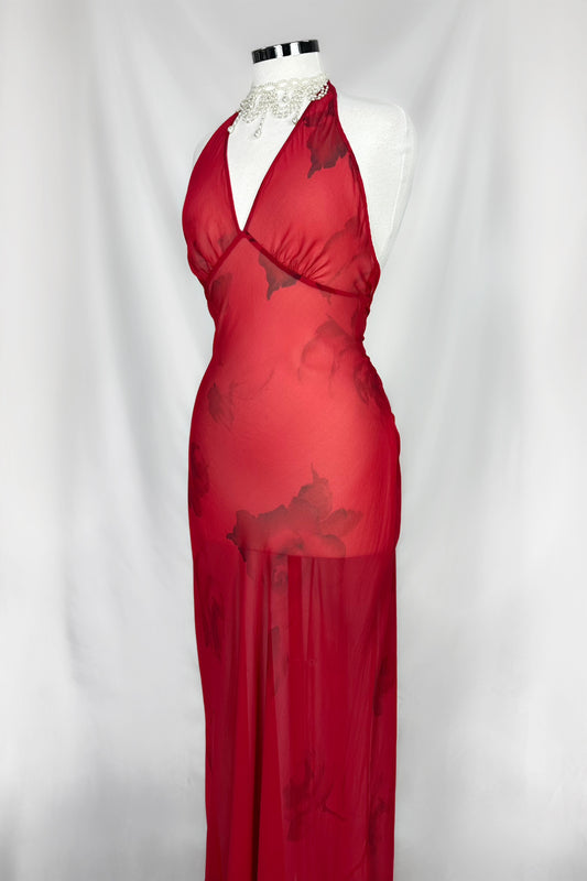 Art Fairy Silk Floral Sheer Maxi Dress With Matching Scarf