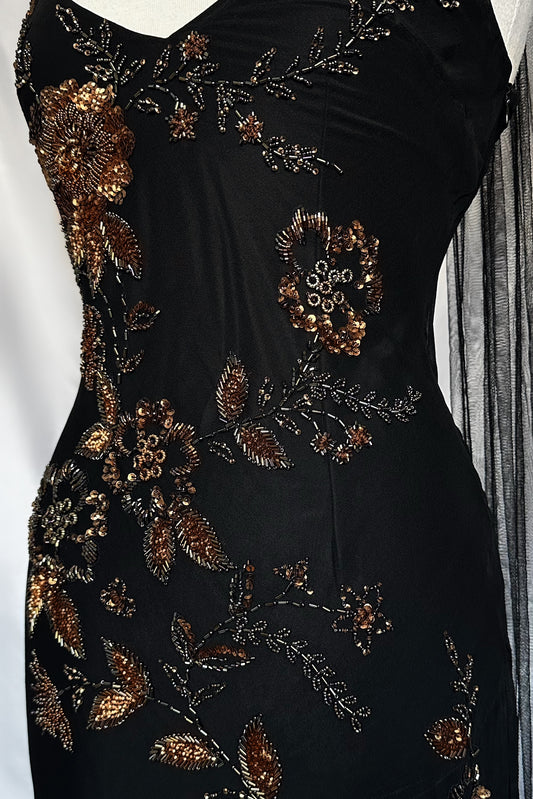 Gilded Gold Embellished Sequin Silk Gown With Matching Shawl
