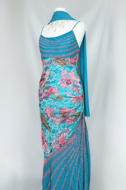 Beach Tropics Silk Embellished Gown With Matching Shawl