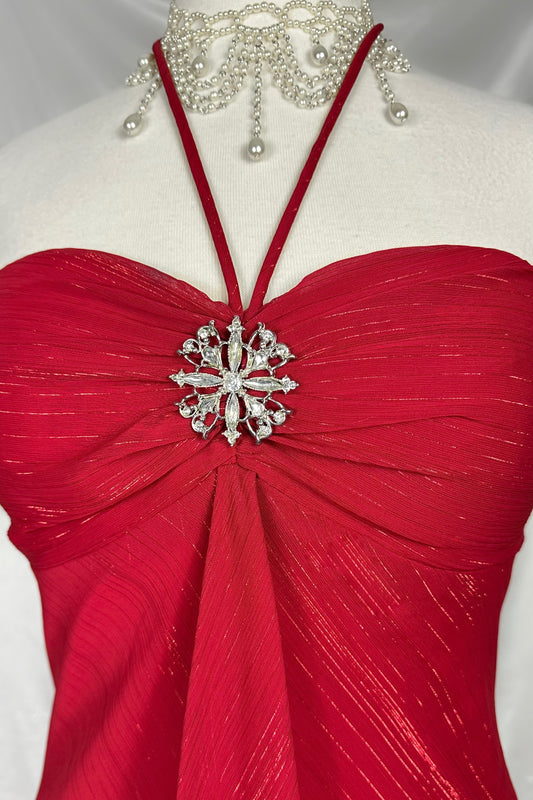 SCARLET SHIMMER HALTER-NECK MAXI DRESS
