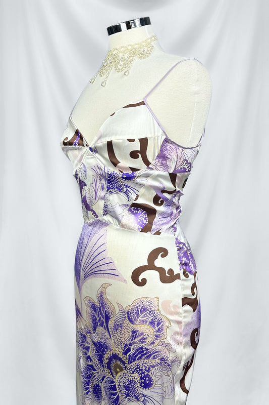 VINTAGE 00s ROBERTO CAVALLI FLORAL SILK MIDI DRESS