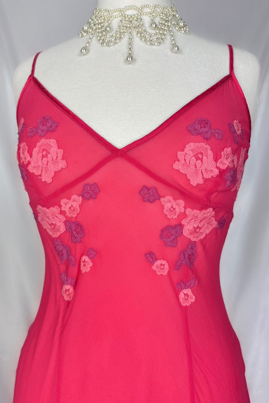 VINTAGE 90s VICTORIA SECRET CORAL PINK LACE SILK DRESS