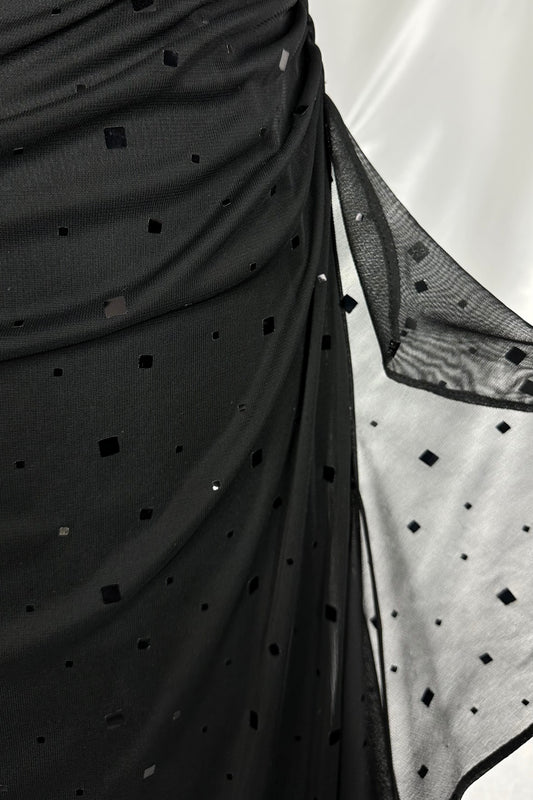 NOIR GLIMMER MESH HALTER NECK MAXI DRESS