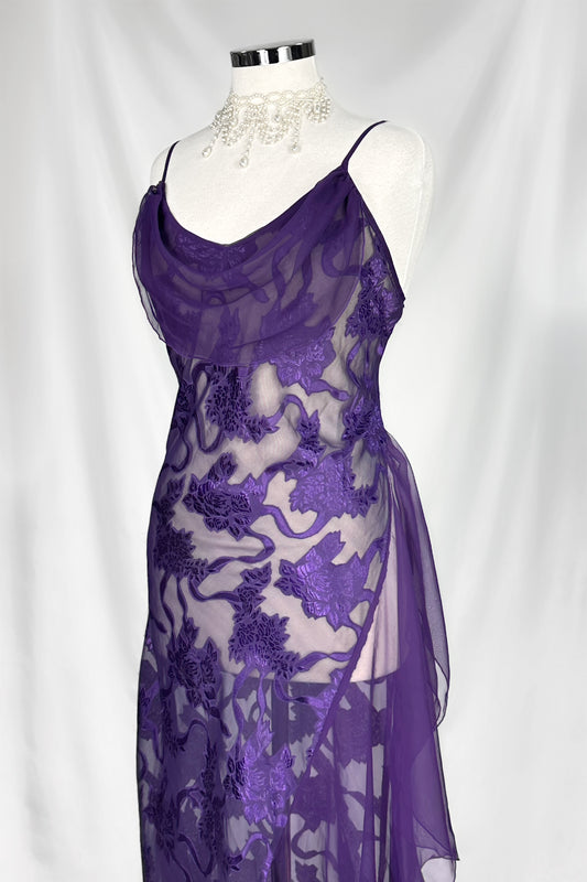 Amethyst Temptation 80s Vintage Victoria’s Secret Sheer Lace Dress