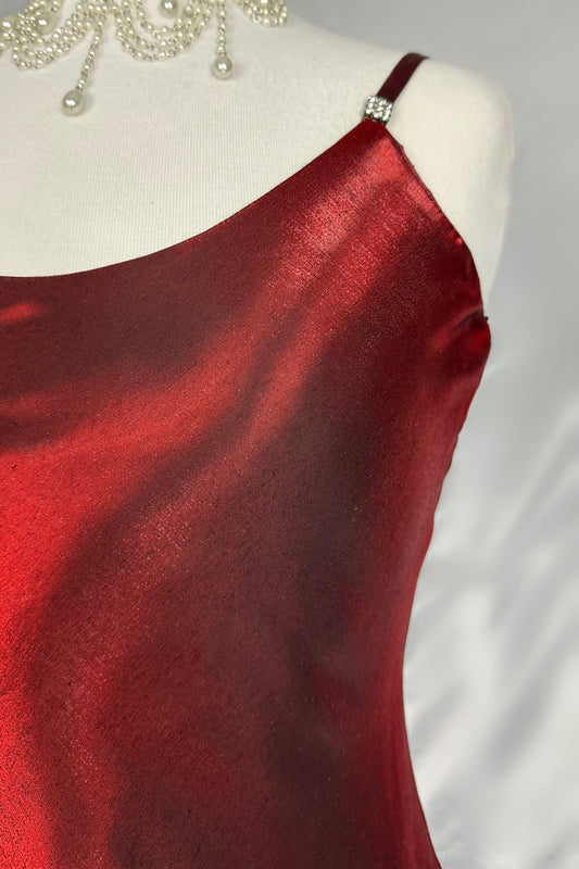 RED MERLOT IRIDESCENT BACKLESS GOWN