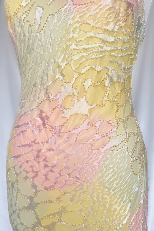 BEACH TROPICS SILK EMBELLISHED GOWN & SCARF SET