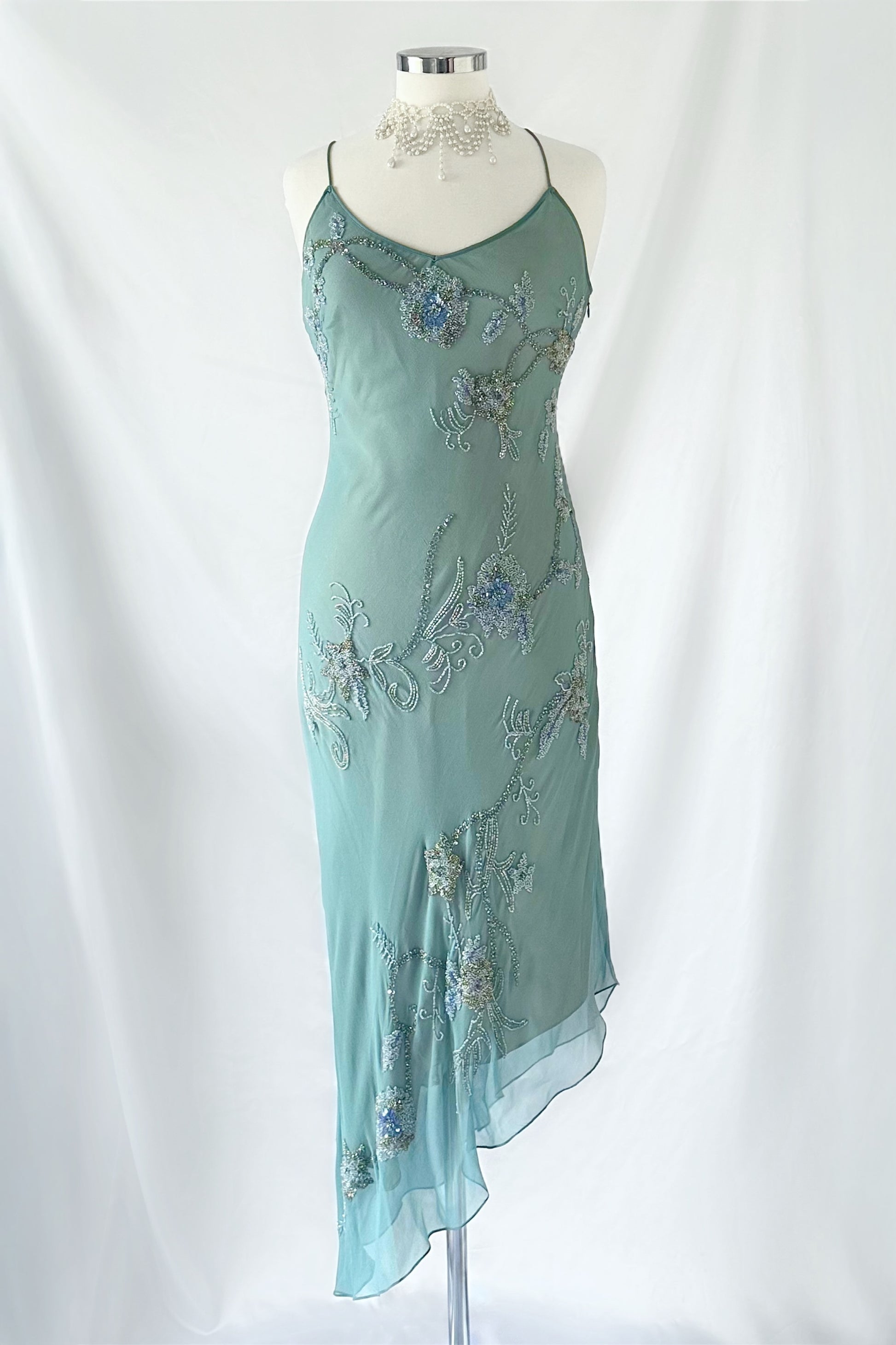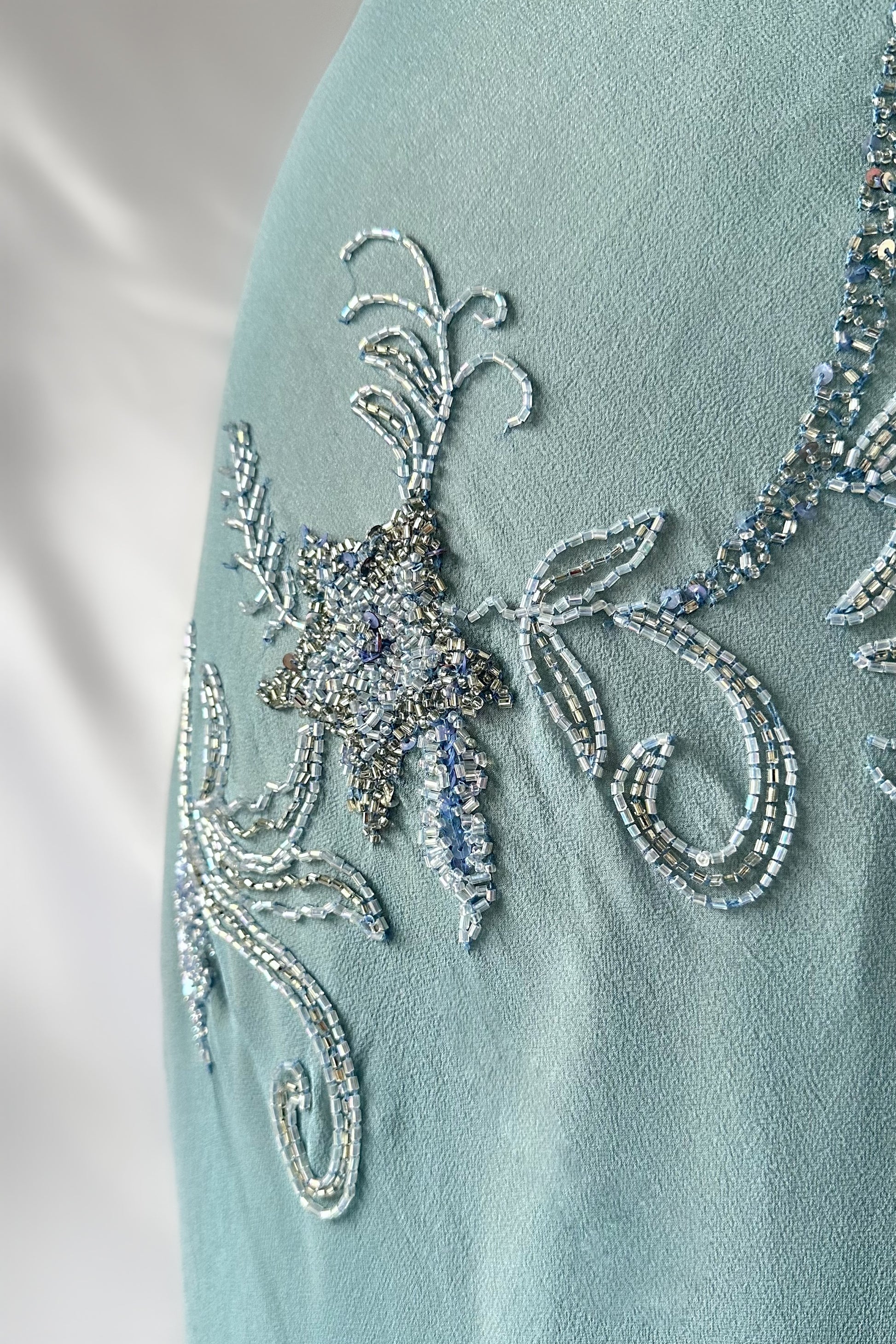 - This garment is intricately beaded and may have small loose threads and/or small instances of missing sequins that are only visible upon very close inspection.