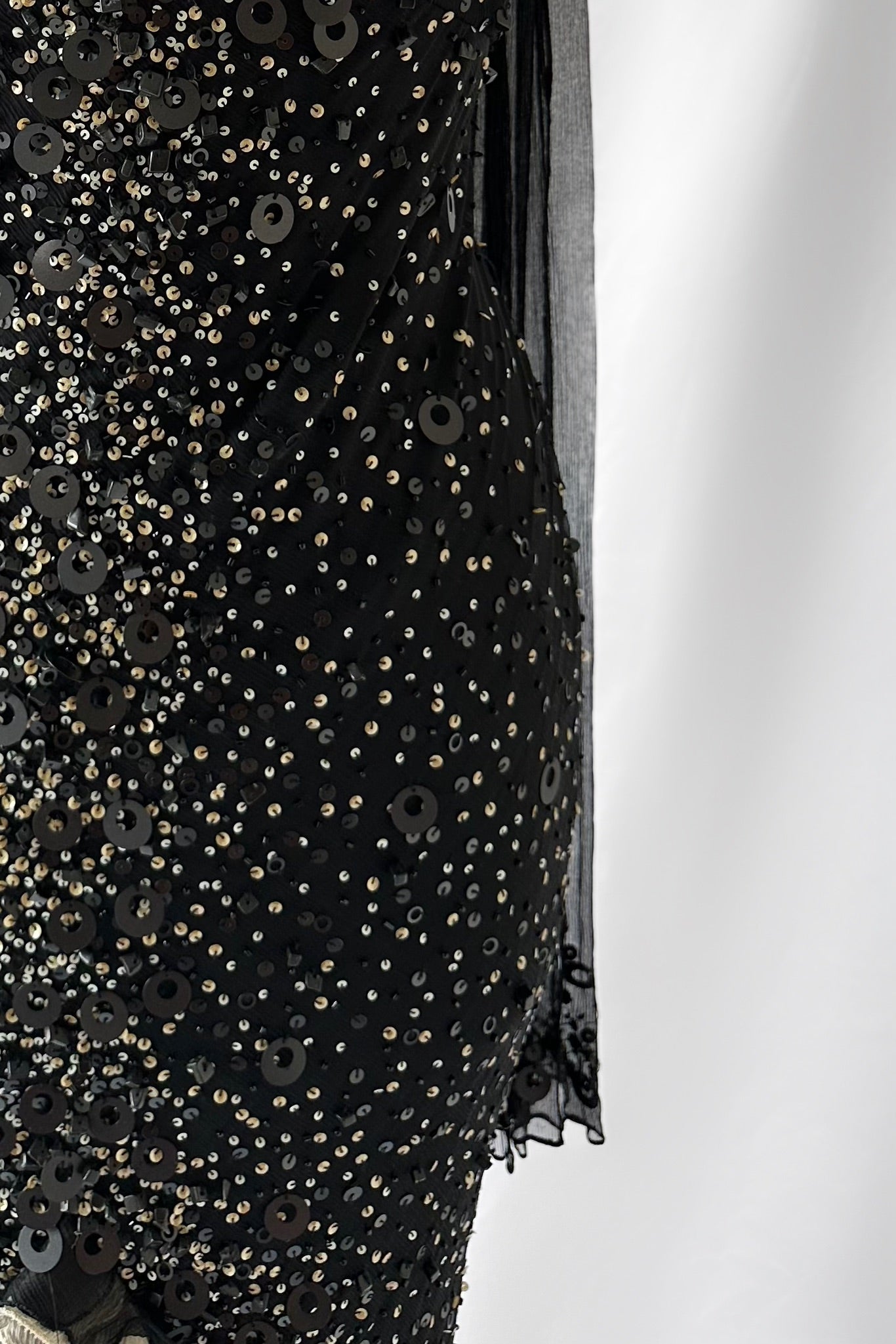 - This garment is intricately beaded and may have small loose threads and/or small instances of missing sequins that are only visible upon close inspection.